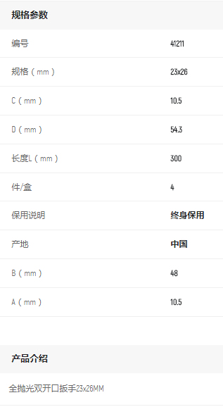 產(chǎn)品名字:世達(dá)光面開口扳手23*26mm